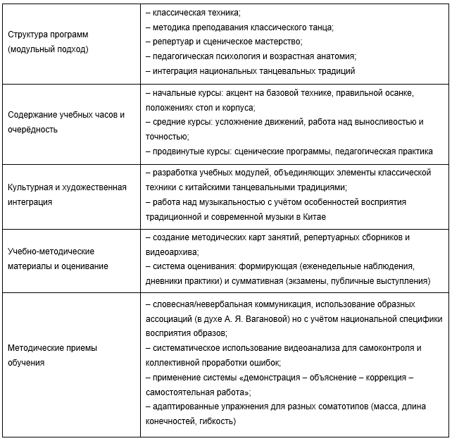 для работы в условиях китайского высшего хореографического образования.