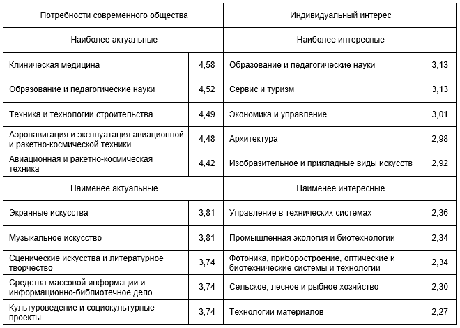 общества. Субъективные оценки интереса различных направлений подготовки