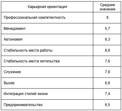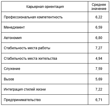 развивать и предлагать иностранным абитуриентам определенные направления. Таблица 2 Средние значения карьерных ориентаций иностранной молодежи