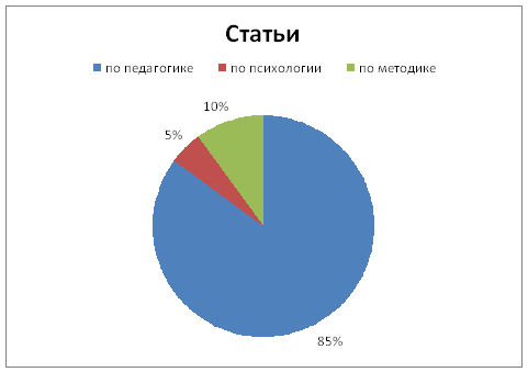 Рис.3 Научный статус авторов статей, опубликованных в журнале в течение 2010 года. О тематике публикаций. В издании публикуются статьи, содержащие результаты оригинальных исследований по педагогике, истории педагогики и образования, психологии, акмеологии, теории и методики обучения и воспитания. Абсолютное большинство статей, опубликованных в 2010 году (85%) представляют результаты научных исследований по педагогике (по шифрам научных специальностей 13.00.01, 13.00.08). Десять процентов статей представляют результаты исследований по психологии (19.00.07, 19.00.13) и лишь пять процентов - по методике обучения и воспитания (в различных предметных областях), см. диаграмму на рис.4.