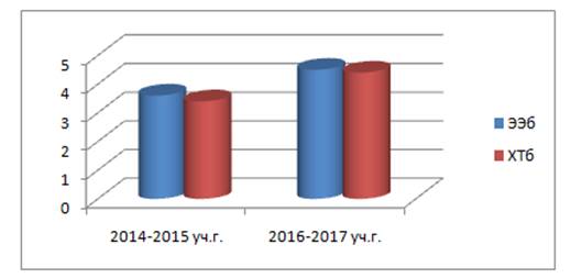 Специфика предмета математики такова, что приходится выносить на слайды огромное количество формул, текстового материала. В этом случае допустима избыточная эмоциональность слайдов, даже аффективность комментария лектора. Для психологической разгрузки во время чтения лекций по математике возможно применение элементов иронических иллюстраций. В любом случае представление материала не должно быть монотонным [4]. Таким образом, при подготовке и создании видеоматериалов, используемых в структуре электронных конспектов лекций мы ориентировались на вышеперечисленные требования. На современном рынке программного обеспечения существует достаточное количество профессиональных математических пакетов типа Mathematica, Maple V, MatLAB, Derive, Mathcad. Однако, они не обладают возможностями продемонстрировать последовательность шагов при решении какой-либо задачи, которые можно было бы использовать преподавателем в процессе тематической лекции. Разработанные нами видео ролики созданы с помощью 3 программ: вся анимация создана в программе Autodesk 3ds max 2009 и MacromediaFlash 8; координатные оси были нарисованы в программе MacromediaFlash; Стадия пост-обработки осуществлялась с помощью программы PinnacleStudio 14. Текстовые фрагменты появляются постепенно с использованием эффекта «пишущая машинка». Рисунки вычерчиваются последовательно. Продемонстрировано получение эллипса. В уравнении эллипса указывается, а на рисунке демонстрируется перемещение эллипса вдоль осей координат. Например, показано получение эллипсоида и гиперболоида вращения методом вращения эллипса вокруг оси OX. Система видеоматериалов разработана в помощь преподавателям математики технических вузов, активно использующих в процессе обучения электронные конспекты лекций. Нами были выделены следующие разделы курса высшей математики, где наиболее целесообразно использование видеоматериалов: векторная алгебра (действия с векторами; векторное произведение векторов; проекция вектора на ось; свойства проекций); аналитическая геометрия (кривые второго порядка; поверхности второго порядка); математический анализ (основные элементарные функции; предел последовательности, предел функции; первый замечательный предел; геометрический смысл производной; построение графиков функций с использованием производной; площадь криволинейной трапеции в прямоугольных и полярных координатах; вычисление объемов пространственных тел; касательная плоскость и нормаль к поверхности). Разработанная база видеоматериалов активно используется в процессе обучения математике обучающихся технических направлений в филиале ТИУ в г. Тобольске в рамках лекционных занятий. Проведенный опрос обучающихся показал, что более 85% из них считают необходимым использование мультимедиа, анимации и видеоресурсов в системе лекционных занятий по математике. Эффективность использования видеоматериалов по теме подтверждается и результатами текущего контроля знаний обучающихся. На рисунке 2 представлены результаты второй текущей аттестации обучающихся 1-го курса направлений подготовки «Электроэнергетика и электротехника» (ЭЭб), «Химическая технология» (ХТб) в 2016-2017уч.г., а также данные текущего контроля знаний обучающихся этих направлений в 2014-2015уч.г.