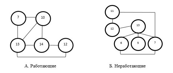 Рис. 1 Предметное поле зависти Примечание: 5 – здоровье, 6 – молодость, 7 – карьера, 10 - мат. достаток, 11 – вещи, 12 - проф.(учебн.) успехи, 13 – интеллект, 14 - личн. качества. Как видно по рисункам предметное поле зависти работающих и неработающих включает как общие сферы, так и специфические. Общими предметами зависти для исследуемых групп являются карьера, профессиональные успехи и интеллект, это так называемые «универсальные» предметы зависти. Данный результат подтверждает исследования Бесковой Т.В. и свидетельствует о том, что в сознании людей независимо от трудоустройства присутствует некий идеальный конструкт, что и является основной причиной, вызывающей зависть к данным предметным сферам. Специфичными для работающих граждан являются предметные сферы материальный достаток и личностные качества. Мы считаем возможным отнести данные предметы к так называемым «насущным предметам зависти», так как субъект способен достаточно объективно оценить их наличие или отсутствие у себя. Полученный результат позволяет нам говорить о том, что работающие граждане испытывают материальный недостаток и дефицит определенных личностных качеств. Специфичными для неработающих граждан являются предметные сферы зависти: здоровье, молодость и вещи. Данный результат позволяет нам говорить, что в группе неработающих граждан представлены «малоценные» и «малоценные, но демонстрируемые» предметные сферы зависти. Таким образом, проведенный нами анализ завистливости и предметного поля зависти работающих и неработающих граждан позволяет нам сделать следующие выводы: