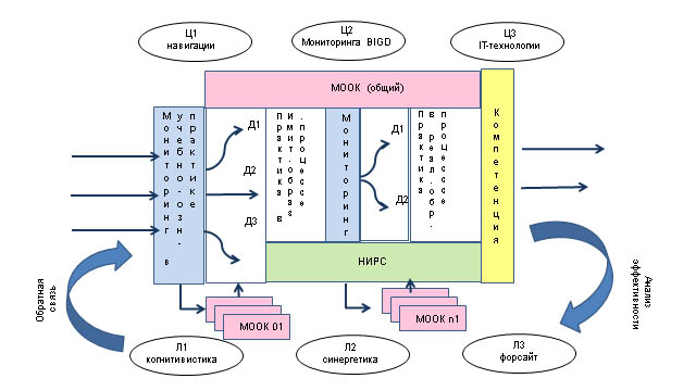 Современный образовательный процесс успешен в том случае, если он включен в исследовательскую повестку университета. То есть он сам является постоянным формирующим экспериментом со всеми атрибутами и процессами. Современный образовательный процесс должен не только «учить», но и «учиться». Только когда результаты (успешные/неуспешные) оперативно подвергаются анализу и возвращаются в образовательный процесс, тогда он становится «живым», динамичным, осознанным, то есть – вариативным и гибким. Для того, чтобы разворачивание образовательной деятельности носило исследовательский характер, необходима обеспечивающая эту задачу инфраструктура, включающая пять центров и три лаборатории. Необходимыми центрами являются: Необходимыми научно-исследовательскими лабораториями, обеспечивающими жизнедеятельность каждого образовательного модуля (и в целом ИОТ) являются: