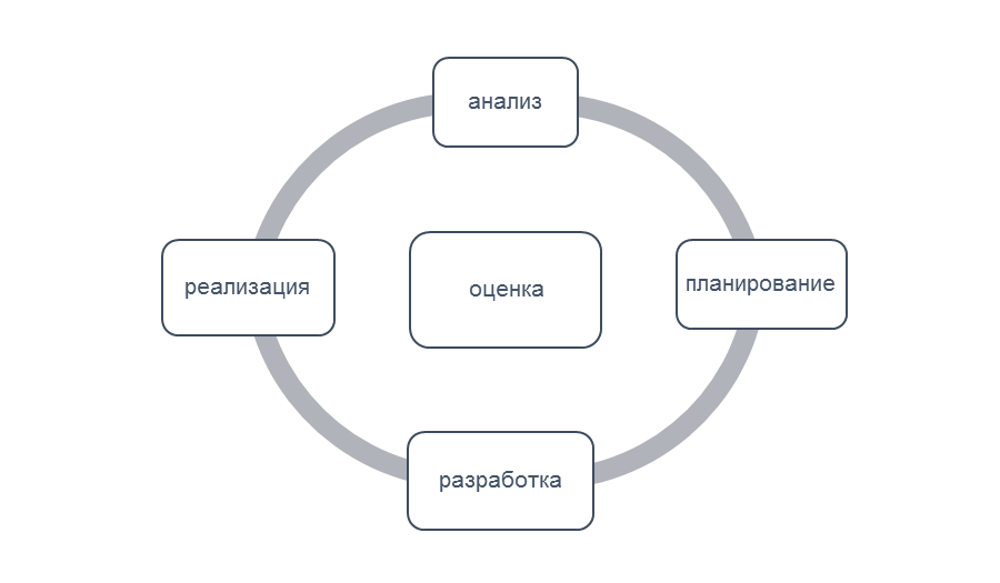 Рис. 1. Проектировочный цикл системы цифрового мониторинга профессионального развития личности Реализация модели интегрированного цифрового мониторинга профессионального развития будущих специалистов в вузе может осуществляться посредством использования различных коммуникационных технологий, выбор которых в большей степени обусловлен образовательной политикой вуза в отношении использования цифровых образовательных ресурсов. Однако отметим, что в рамках реализации процессуального блока образовательной технологии мониторинга возможно использование как групповых, так и индивидуальных форм цифрового взаимодействия. Система цифрового мониторинга может быть внедрена в образовательный процесс вуза в составе практического компонента профессиональной подготовки будущих специалистов иноязычного образования, что подразумевает ее интеграцию в нескольких направлениях: интеграцию в качестве компонента (модуля) дисциплины или в качестве самостоятельного учебного модуля, или в качестве компонента системы непрерывной психолого-педагогической поддержки обучающихся в вузе. В заключении отметим, что проектирование системы интегрированного цифрового мониторинга профессионального развития будущих специалистов иноязычного образования в условиях вуза представляет собой актуальную проблему, решение которой будет способствовать формированию личности, готовой к самореализации и профессиональному развитию. При этом, практический потенциал использования цифровых ресурсов в проектировании и реализации модели мониторинга способен обеспечить: персонализацию образовательного процесса; формирование образовательной автономии; закрепление образовательных результатов; развитие устойчивого интереса к профессии и обеспечение эффективной обратной связи.